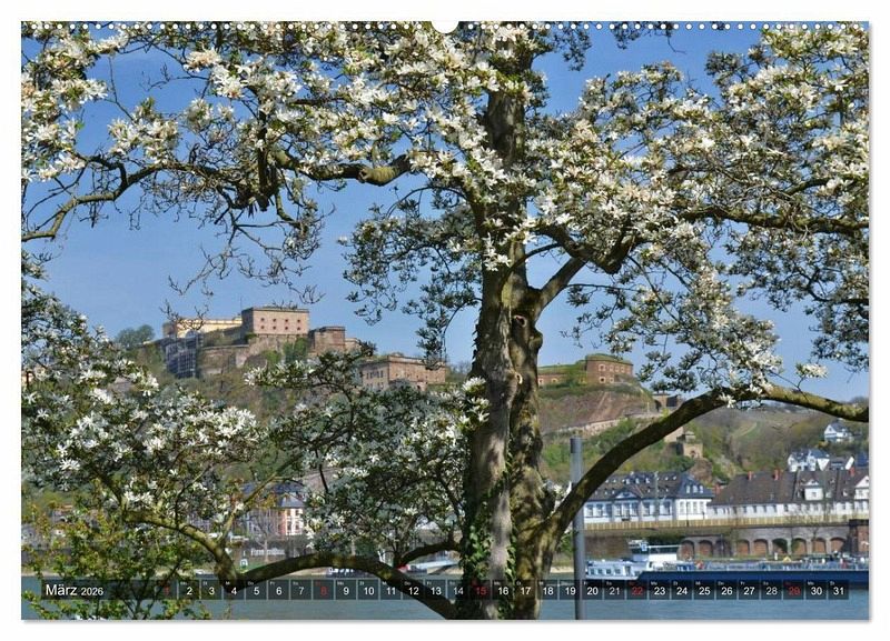 März: Frühlingshafter Blick zur Festung Ehrenbreitstein.