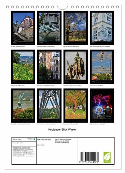 QUALITÄT - Hochwertiger Fotokalender mit 12 wunderschönen Motiven auf lichtbeständigem Bilderdruckpapier, robuste Spiralbindung mit Aufhängebügel.NACHHALTIG - deutliche Abfallreduzierung durch bedarfsgerechte Einzelstückfertigung, umweltfreundliches FSC-zertifiziertes Papier, Produktion in Deutschland, klimabewusste Logistik.PERFEKTES GESCHENK - Kalender für Freunde und Familie, für Kinder und Erwachsene, jung und alt, zu Weihnachten, Geburtstag oder zwischendurch.VIELFALT - Bildkalender in verschiedenen Formaten, z.B. DIN A5, DIN A4, DIN A3 sowie DIN A2. Ob Naturmotiv, Gemälde oder Fotos, ideal für ein persönliches Wohlfühlambiente.Koblenz für Kenner und Entdecker von Autor(in): Maximilian Fuchs