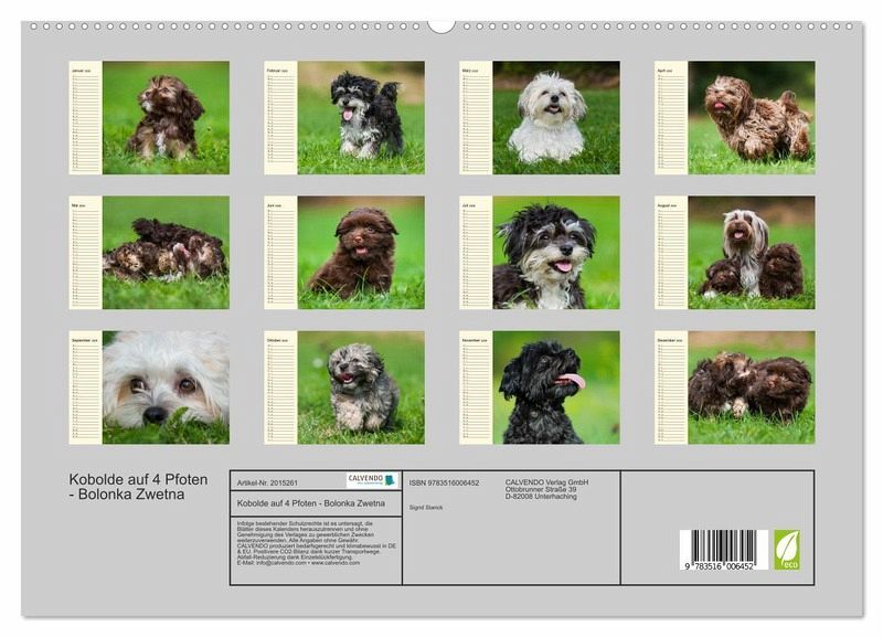Der Bolonka Zwetna ist seit einiger Zeit ein beliebter Kleinhund geworden. Die Tierfotografin Sigrid Starick fing einen Tag im Leben einer Hundefamilie mit ihren reizenden Welpen in wunderschönen Fotos ein, die sie Monat für Monat verzaubern werden. Ein Muss für jeden Liebhaber dieser russischen Kleinhunderasse.