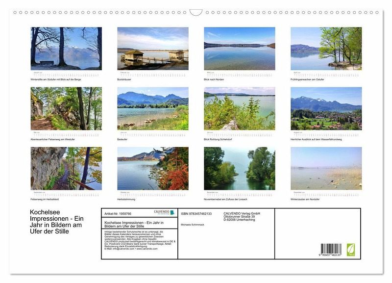 QUALITÄT - Hochwertiger Fotokalender mit 12 wunderschönen Motiven auf lichtbeständigem Bilderdruckpapier, robuste Spiralbindung mit Aufhängebügel.NACHHALTIG - deutliche Abfallreduzierung durch bedarfsgerechte Einzelstückfertigung, umweltfreundliches FSC-zertifiziertes Papier, Produktion in Deutschland, klimabewusste Logistik.PERFEKTES GESCHENK - Kalender für Freunde und Familie, für Kinder und Erwachsene, jung und alt, zu Weihnachten, Geburtstag oder zwischendurch.VIELFALT - Bildkalender in verschiedenen Formaten, z.B. DIN A5, DIN A4, DIN A3 sowie DIN A2. Ob Naturmotiv, Gemälde oder Fotos, ideal für ein persönliches Wohlfühlambiente.Der malerische Kochelsee im Jahresverlauf. von Autor(in): Michaela Spreider