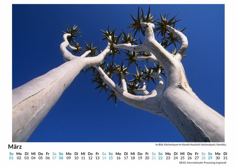 Entdecken Sie die faszinierende Schönheit des Köcherbaums mit unserem exklusiven Monats-Wandkalender! Lassen Sie sich Monat für Monat von 12 atemberaubenden Motiven dieses majestätischen Baumes verzaubern, der die Wüstenlandschaften Südafrikas prägt. Gedruckt auf hochwertigem, lichtbeständigem Bilderdruckpapier, kommen die Details und Farben der Natur perfekt zur Geltung. Unser Kalender wird in Deutschland auf FSC-zertifiziertem Papier produziert - für ein nachhaltiges und umweltbewusstes Erlebnis. Holen Sie sich ein Stück Natur in Ihr Zuhause oder Büro und genießen Sie das ganze Jahr über die einzigartige Ausstrahlung des Köcherbaums. Perfekt auch als Geschenk! Hochwertig Erleben Sie ein Jahr voller Eleganz mit unserem Premium-Fotokalender. Jedes der 12 Motive ist auf hochwertigem, lichtbeständigem Bilderdruckpapier gedruckt, um die Lebendigkeit jedes Bildes zu bewahren. Die robuste Spiralbindung gewährleistet Langlebigkeit und einfache Handhabung. Nachhaltig Unser Engagement für die Umwelt spiegelt sich in jedem Exemplar wider. Durch die Produktion auf Abruf reduzieren wir signifikant unseren Abfall. Wir verwenden ausschließlich umweltfreundliches, FSC-zertifiziertes Papier. Stolz gefertigt in Deutschland, achten wir bei unserer Logistik auf Klimaschutz, um unseren ökologischen Fußabdruck zu minimieren. Das ideale Geschenk Dieser Kalender ist das perfekte Präsent für jeden Anlass - ob Weihnachten, Geburtstage oder einfach als liebevolle Aufmerksamkeit zwischendurch. Geeignet für Freunde, Familie, Kinder und Erwachsene gleichermaßen, bereichert er jedes Zuhause mit seiner Vielfalt und Schönheit, unabhängig vom Alter der Beschenkten.