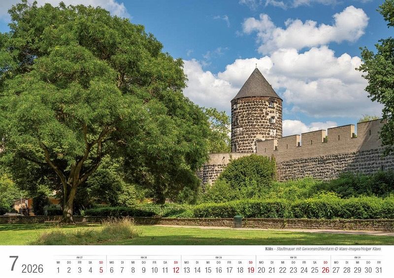 Der hochwertig verarbeitete Bildkalender Köln 2026 im A4 Format führt mit aktuellen, stimmungsvollen und repräsentativen Aufnahmen durch die Rheinische Metropole. 14 Seiten, Bilderdruck matt 170 g + stabiler Graukarton aus Buchbinderpappe als Rückwand vor dem Indexblatt. Format A4, ca. 21 x 29,7 cm quer, Spiralbindung.