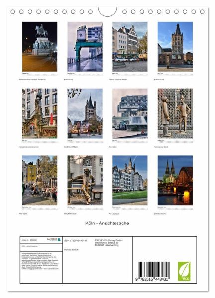 QUALITÄT - Hochwertiger Fotokalender mit 12 wunderschönen Motiven auf lichtbeständigem Bilderdruckpapier, robuste Spiralbindung mit Aufhängebügel.NACHHALTIG - deutliche Abfallreduzierung durch bedarfsgerechte Einzelstückfertigung, umweltfreundliches FSC-zertifiziertes Papier, Produktion in Deutschland, klimabewusste Logistik.PERFEKTES GESCHENK - Kalender für Freunde und Familie, für Kinder und Erwachsene, jung und alt, zu Weihnachten, Geburtstag oder zwischendurch.VIELFALT - Bildkalender in verschiedenen Formaten, z.B. DIN A5, DIN A4, DIN A3 sowie DIN A2. Ob Naturmotiv, Gemälde oder Fotos, ideal für ein persönliches Wohlfühlambiente.12 Impressionen aus der rheinischen Metropole von Autor(in): Thomas Bartruff
