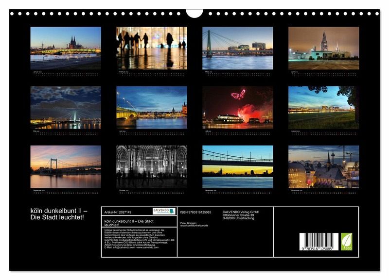 QUALITÄT - Hochwertiger Fotokalender mit 12 wunderschönen Motiven auf lichtbeständigem Bilderdruckpapier, robuste Spiralbindung mit Aufhängebügel.NACHHALTIG - deutliche Abfallreduzierung durch bedarfsgerechte Einzelstückfertigung, umweltfreundliches FSC-zertifiziertes Papier, Produktion in Deutschland, klimabewusste Logistik.PERFEKTES GESCHENK - Kalender für Freunde und Familie, für Kinder und Erwachsene, jung und alt, zu Weihnachten, Geburtstag oder zwischendurch.VIELFALT - Bildkalender in verschiedenen Formaten, z.B. DIN A5, DIN A4, DIN A3 sowie DIN A2. Ob Naturmotiv, Gemälde oder Fotos, ideal für ein persönliches Wohlfühlambiente.Köln bei Nacht von Autor(in): Peter Brüggen