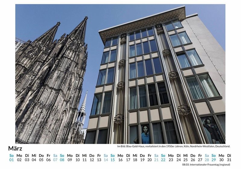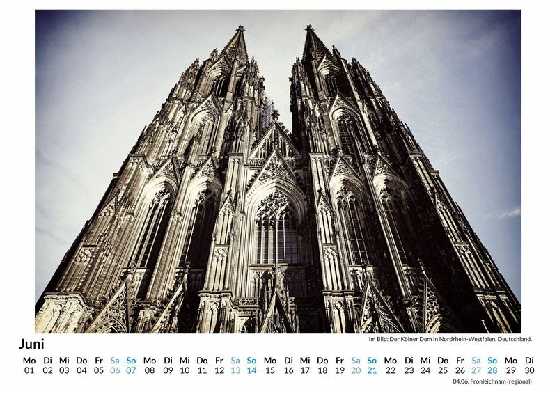 Entdecken Sie Köln in all seinen Facetten mit unserem hochwertigen Wandkalender! 12 liebevoll ausgewählte Motive fangen die einzigartige Atmosphäre dieser lebendigen Stadt ein - vom majestätischen Kölner Dom bis hin zu charmanten Altstadtgassen. Gedruckt auf lichtbeständigem Bilderdruckpapier, bleiben die Farben das ganze Jahr über brillant. Nachhaltigkeit liegt uns am Herzen: Der Kalender wird in Deutschland auf FSC-zertifiziertem Papier produziert. Perfekt für alle, die Köln lieben oder die Stadt neu entdecken möchten. Holen Sie sich ein Stück Köln nach Hause und lassen Sie sich Monat für Monat inspirieren! Ideal auch als Geschenk. Hochwertig Erleben Sie ein Jahr voller Eleganz mit unserem Premium-Fotokalender. Jedes der 12 Motive ist auf hochwertigem, lichtbeständigem Bilderdruckpapier gedruckt, um die Lebendigkeit jedes Bildes zu bewahren. Die robuste Spiralbindung gewährleistet Langlebigkeit und einfache Handhabung. Nachhaltig Unser Engagement für die Umwelt spiegelt sich in jedem Exemplar wider. Durch die Produktion auf Abruf reduzieren wir signifikant unseren Abfall. Wir verwenden ausschließlich umweltfreundliches, FSC-zertifiziertes Papier. Stolz gefertigt in Deutschland, achten wir bei unserer Logistik auf Klimaschutz, um unseren ökologischen Fußabdruck zu minimieren. Das ideale Geschenk Dieser Kalender ist das perfekte Präsent für jeden Anlass - ob Weihnachten, Geburtstage oder einfach als liebevolle Aufmerksamkeit zwischendurch. Geeignet für Freunde, Familie, Kinder und Erwachsene gleichermaßen, bereichert er jedes Zuhause mit seiner Vielfalt und Schönheit, unabhängig vom Alter der Beschenkten.