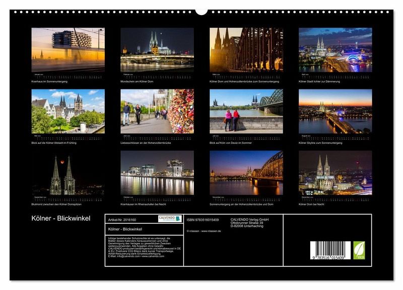 PREMIUM-LINIE - Brillanter Fotokalender mit 12 wunderschönen Motiven, Kunstdruck in Hochglanz in Museumsqualität.QUALITÄT - edle Materialien, stabile Rückwand mit 2 innovativen Einstecktaschen für eine optimale Präsentation an der Wand.NACHHALTIG - deutliche Abfallreduzierung durch bedarfsgerechte Einzelstückfertigung, umweltfreundliches FSC-zertifiziertes Papier, Produktion in Deutschland, klimabewusste Logistik.PERFEKTES GESCHENK - Kalender für Freunde und Familie, für Kinder und Erwachsene, jung und alt, zu Weihnachten, Geburtstag oder zwischendurch.Besondere Blickwinkel der Rheinmetropole Köln am Tag, bei Nacht und zum Sonnenuntergang von Autor(in): rclassen