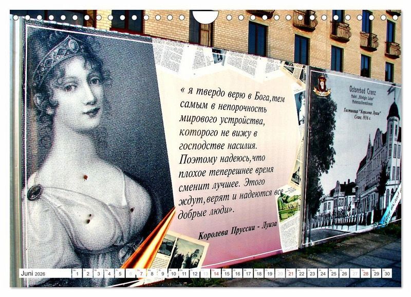 Am Portal der Königin-Luise-Brücke in Tilsit/Sowjetsk prangt wie einst das Porträt der preußischen Monarchin. Das neue Königin-Luise-Denkmal wurde 2014 feierlich eingeweiht. Im Ostseebad Cranz/Selenogradsk kann man im Hotel Luise übernachten, den Durst am Luisen-Brunnen löschen und im Luisenpark am Kornblumenfest teilnehmen. Luise ist Kult im russischen Ostpreußen - eine Königin der Herzen, die Brücken baut zwischen Russland und Deutschland.