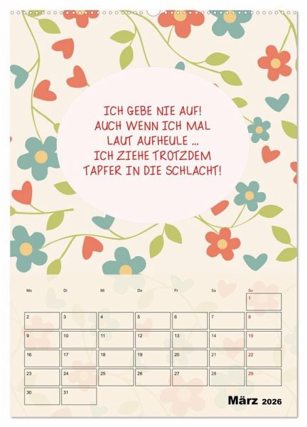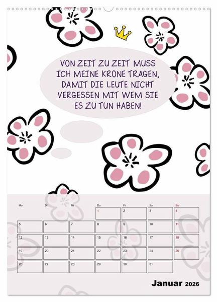 Mit diesem witzigen Planer hat man nicht nur alle Termine fest im Griff, dieser Kalender sorgt mit humorvollen Sprüchen auch für viel gute Laune und zaubert allen Majestäten und deren Untertanen ein verschmitztes Lächeln auf das Gesicht. Jeder Monat bietet reichlich Platz für Notizen, sodass genauer Planung und Organisation nichts mehr im Wege steht. Ein tolles Geschenk für alle Königinnen mit Sinn für Humor!