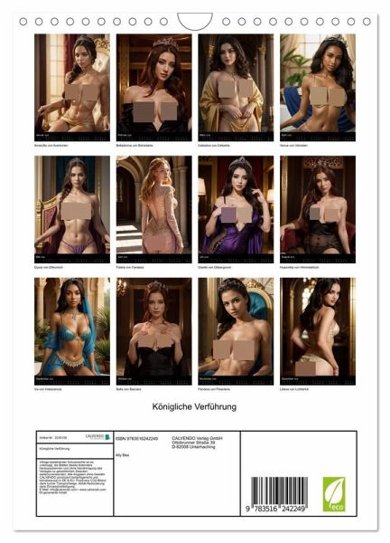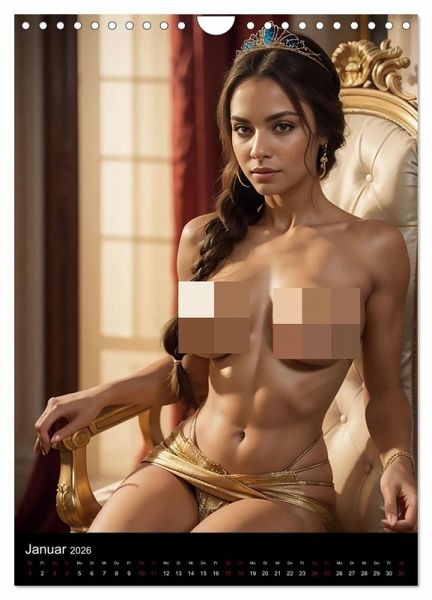 Entdecken Sie die aufregende Welt des Begehrens und der Fantasie mit diesem erotischen KI Kalender. Jeden Monat eröffnet sich Ihnen eine neue Dimension der Sinnlichkeit, verkörpert durch eine atemberaubende Prinzessin aus dem Reich der Fantasie.