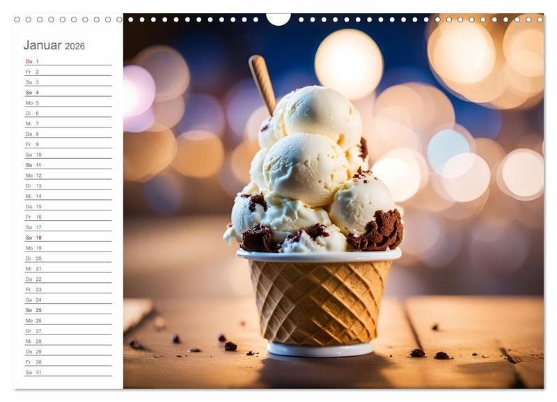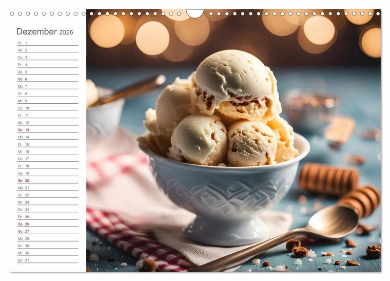 QUALITÄT - Hochwertiger Fotokalender mit 12 wunderschönen Motiven auf lichtbeständigem Bilderdruckpapier, robuste Spiralbindung mit Aufhängebügel.NACHHALTIG - deutliche Abfallreduzierung durch bedarfsgerechte Einzelstückfertigung, umweltfreundliches FSC-zertifiziertes Papier, Produktion in Deutschland, klimabewusste Logistik.PERFEKTES GESCHENK - Kalender für Freunde und Familie, für Kinder und Erwachsene, jung und alt, zu Weihnachten, Geburtstag oder zwischendurch.VIELFALT - Bildkalender in verschiedenen Formaten, z.B. DIN A5, DIN A4, DIN A3 sowie DIN A2. Ob Naturmotiv, Gemälde oder Fotos, ideal für ein persönliches Wohlfühlambiente.Ein Jahr voller genüsslicher Eiscreme-Träume von Autor(in): Michaela Spreider