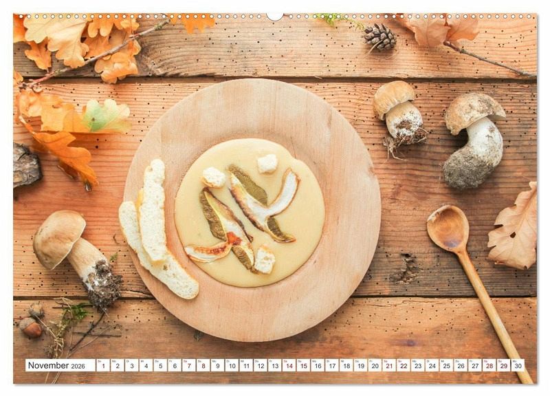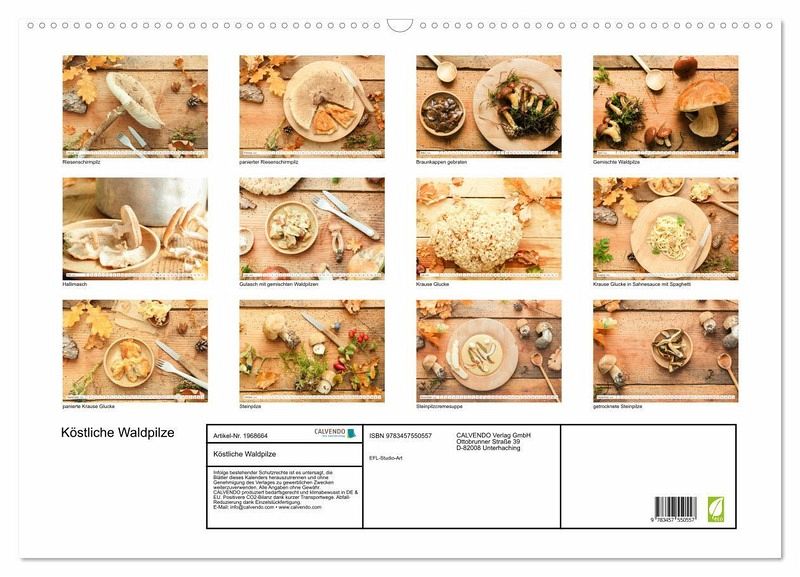 Ein Kalender für Naturfreunde mit köstlichen Waldpilzen. Tolle Gerichte für zu Hause neu entdecken mit Zutaten aus dem Wald. Gerichte mit Maronen, Steinpilzen und Gemischten Pilzen sind sehr schmackhaft. Die Krause Glucke als schmackhaften Highlight.