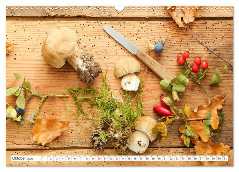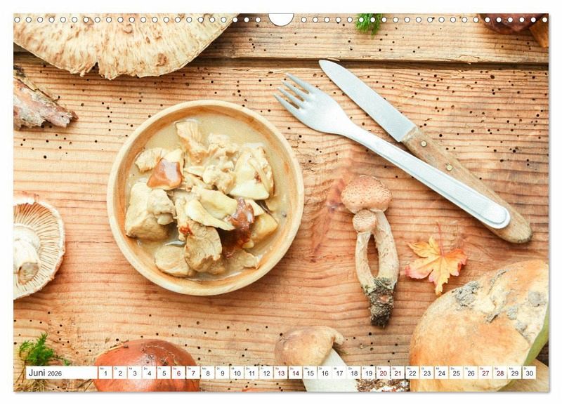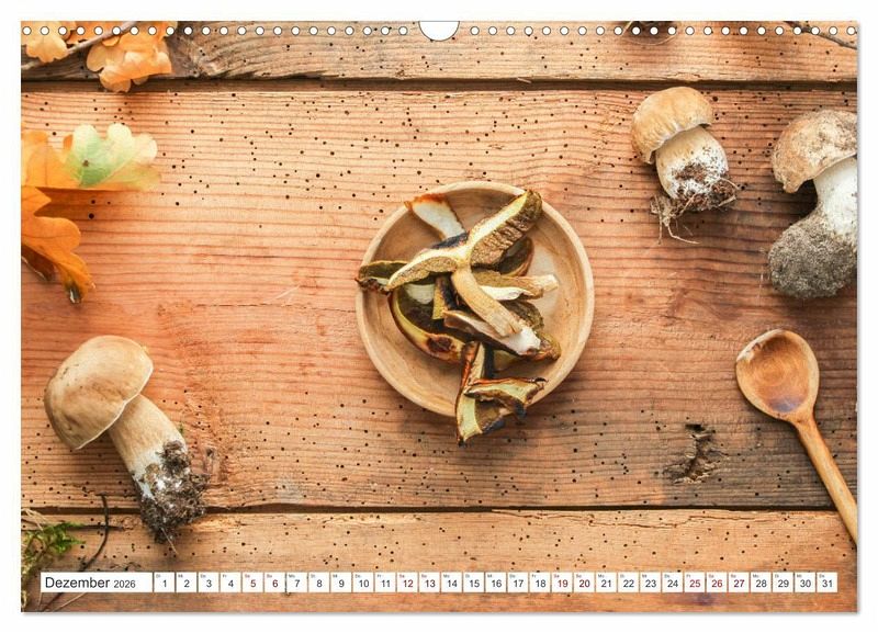Ein Kalender für Naturfreunde mit köstlichen Waldpilzen. Tolle Gerichte für zu Hause neu entdecken mit Zutaten aus dem Wald. Gerichte mit Maronen, Steinpilzen und Gemischten Pilzen sind sehr schmackhaft. Die Krause Glucke als schmackhaften Highlight.