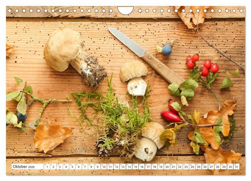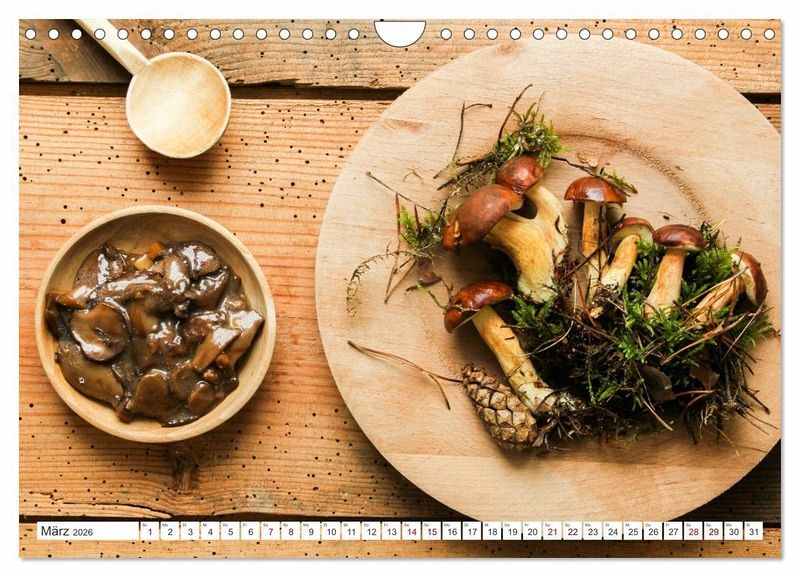 Ein Kalender für Naturfreunde mit köstlichen Waldpilzen. Tolle Gerichte für zu Hause neu entdecken mit Zutaten aus dem Wald. Gerichte mit Maronen, Steinpilzen und Gemischten Pilzen sind sehr schmackhaft. Die Krause Glucke als schmackhaften Highlight.