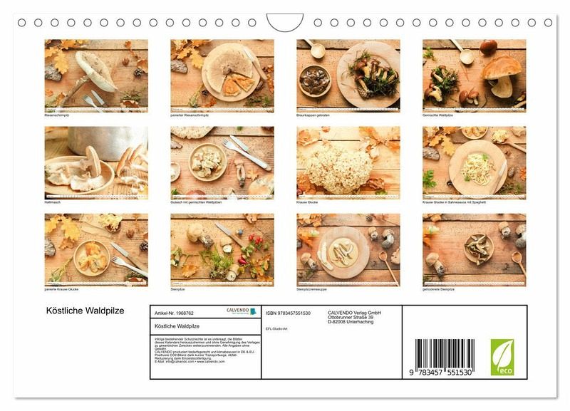 QUALITÄT - Hochwertiger Fotokalender mit 12 wunderschönen Motiven auf lichtbeständigem Bilderdruckpapier, robuste Spiralbindung mit Aufhängebügel.NACHHALTIG - deutliche Abfallreduzierung durch bedarfsgerechte Einzelstückfertigung, umweltfreundliches FSC-zertifiziertes Papier, Produktion in Deutschland, klimabewusste Logistik.PERFEKTES GESCHENK - Kalender für Freunde und Familie, für Kinder und Erwachsene, jung und alt, zu Weihnachten, Geburtstag oder zwischendurch.VIELFALT - Bildkalender in verschiedenen Formaten, z.B. DIN A5, DIN A4, DIN A3 sowie DIN A2. Ob Naturmotiv, Gemälde oder Fotos, ideal für ein persönliches Wohlfühlambiente.Viele tolle Pilzgerichte für jeden Monat. von Autor(in): EFLStudioArt