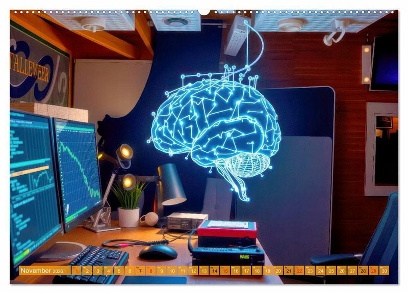 12 Monate Zukunft, der KI Kalender 2026. Entdecke die Welt der künstlichen Intelligenz in Bildern, Fakten und faszinierenden Visionen. Jeder Monat ein Blick in die digitale Seele von morgen. Von neuronalen Netzen bis zu maschinellem Lernen. Dieser Kalender erklärt, inspiriert und bringt Licht ins Daten Dunkel. 12 visuelle Meisterwerke, erschaffen von künstlicher Intelligenz. Ein Kalender zwischen Code und Kreativität. Jeden Monat ein Denkanstoß und ein Bild, das zum Staunen einlädt. Für alle, die Technik lieben, oder verstehen wollen. Der Inhalt wurde mit Hilfe von KI erstellt.
