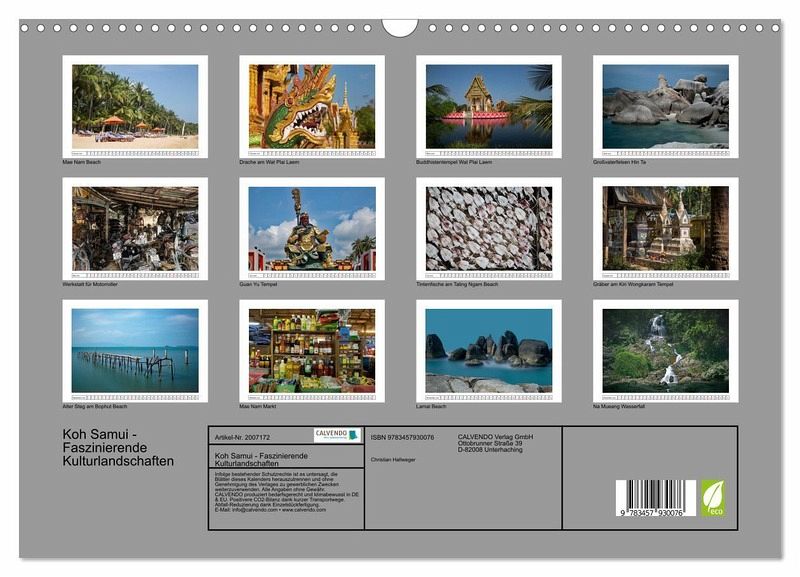 QUALITÄT - Hochwertiger Fotokalender mit 12 wunderschönen Motiven auf lichtbeständigem Bilderdruckpapier, robuste Spiralbindung mit Aufhängebügel.NACHHALTIG - deutliche Abfallreduzierung durch bedarfsgerechte Einzelstückfertigung, umweltfreundliches FSC-zertifiziertes Papier, Produktion in Deutschland, klimabewusste Logistik.PERFEKTES GESCHENK - Kalender für Freunde und Familie, für Kinder und Erwachsene, jung und alt, zu Weihnachten, Geburtstag oder zwischendurch.VIELFALT - Bildkalender in verschiedenen Formaten, z.B. DIN A5, DIN A4, DIN A3sowie DIN A2. Ob Naturmotiv, Gemälde oder Fotos, ideal für ein persönliches Wohlfühlambiente.Der Kalender zeigt 13 Motive der drittgrößten thailändischen Insel Koh Samui. von Autor(in): Christian Hallweger