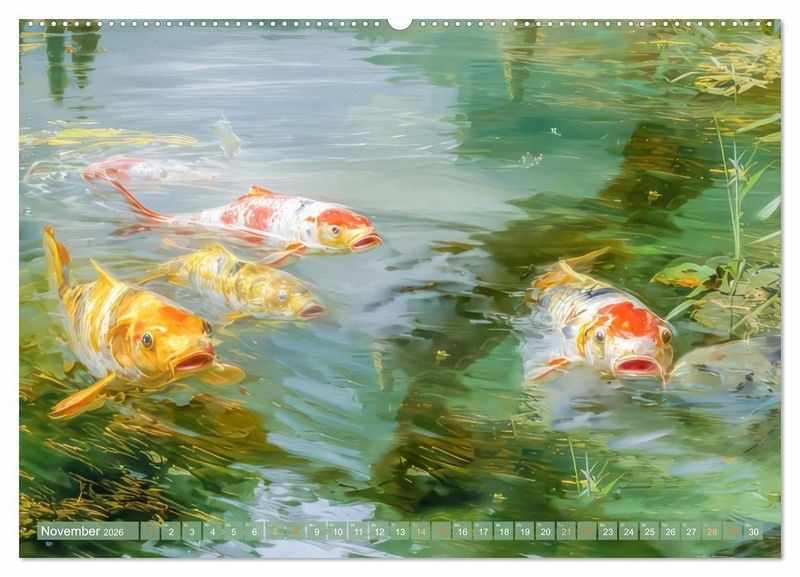 Gezeigt werden ki-generierte malerische Kois. Diese Fische sind sehr aufwändig in der Zucht und haben viele Anhänger. Sie wurden schon früh in Japan gezüchtet. Die farbenfrohen Koikarpfen können sehr alt werden, zudem sind sie Gruppentiere. Für alle Fans dieser imposanten Fische.