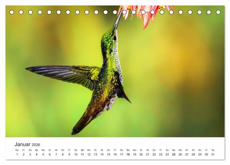 Kolibris sind faszinierende Vögel. Mit ihrem schimmernden Federkleid und ihrem unglaublich schnellen Flügelschlag sind sie wirklich einmalig. Dieser Kalender zeigt die schönsten Kolibrifotos.