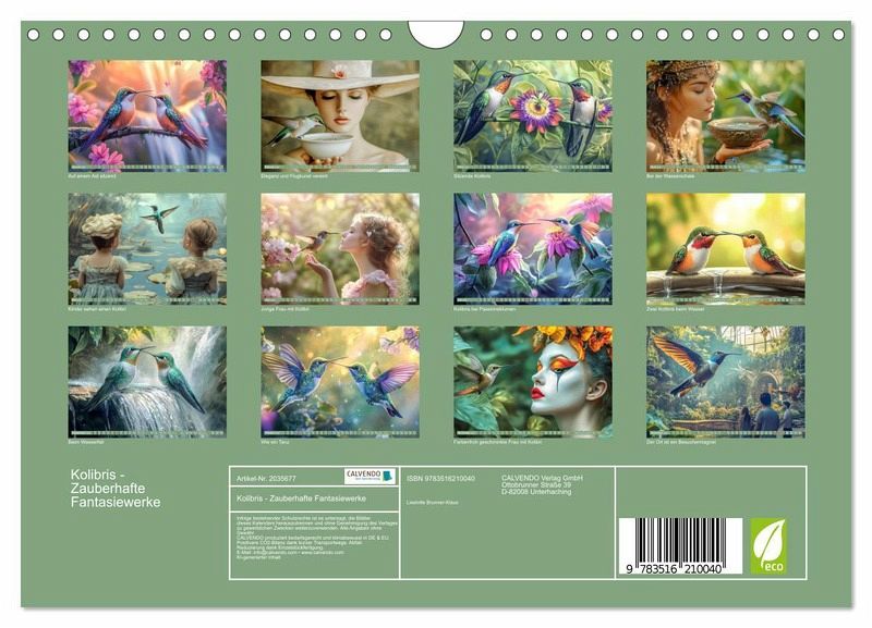 QUALITÄT - Hochwertiger Fotokalender mit 12 wunderschönen Motiven auf lichtbeständigem Bilderdruckpapier, robuste Spiralbindung mit Aufhängebügel.NACHHALTIG - deutliche Abfallreduzierung durch bedarfsgerechte Einzelstückfertigung, umweltfreundliches FSC-zertifiziertes Papier, Produktion in Deutschland, klimabewusste Logistik.PERFEKTES GESCHENK - Kalender für Freunde und Familie, für Kinder und Erwachsene, jung und alt, zu Weihnachten, Geburtstag oder zwischendurch.VIELFALT - Bildkalender in verschiedenen Formaten, z.B. DIN A5, DIN A4, DIN A3 sowie DIN A2. Ob Naturmotiv, Gemälde oder Fotos, ideal für ein persönliches Wohlfühlambiente.Kolibris, superklein und absolut zauberhaft von Autor(in): Liselotte Brunner-Klaus
