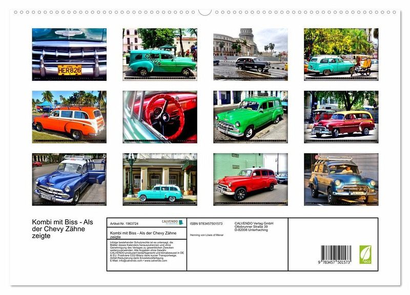 PREMIUM-LINIE - Brillanter Fotokalender mit 12 wunderschönen Motiven, Kunstdruck in Hochglanz in Museumsqualität.QUALITÄT - edle Materialien, stabile Rückwand mit 2 innovativen Einstecktaschen für eine optimale Präsentation an der Wand.NACHHALTIG - deutliche Abfallreduzierung durch bedarfsgerechte Einzelstückfertigung, umweltfreundliches FSC-zertifiziertes Papier, Produktion in Deutschland, klimabewusste Logistik.PERFEKTES GESCHENK - Kalender für Freunde und Familie, für Kinder und Erwachsene, jung und alt, zu Weihnachten, Geburtstag oder zwischendurch.Der Chevrolet Station Wagon von 1952 in Kuba von Autor(in): Henning von Loewis of Menar