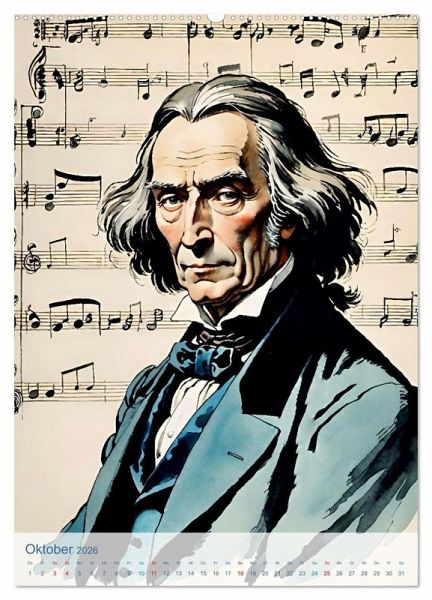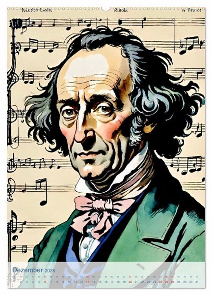 Dieser Kalender bietet die Möglichkeit, sich jeden Tag mit den bedeutendsten Persönlichkeiten der klassischen Musik zu beschäftigen. Lassen Sie sich inspirieren, mehr über Leben und Werk dieser Komponisten zu erfahren, ihre Musik zu entdecken und den eigenen musikalischen Horizont zu erweitern. Die markanten Porträts hat Steffani Lehmann mit Unterstützung einer KI editiert.