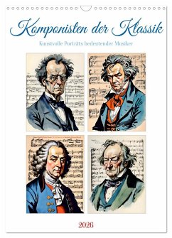 Dieser Kalender bietet die Möglichkeit, sich jeden Tag mit den bedeutendsten Persönlichkeiten der klassischen Musik zu beschäftigen. Lassen Sie sich inspirieren, mehr über Leben und Werk dieser Komponisten zu erfahren, ihre Musik zu entdecken und den eigenen musikalischen Horizont zu erweitern. Die markanten Porträts hat Steffani Lehmann mit Unterstützung einer KI editiert.