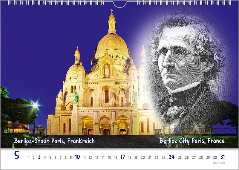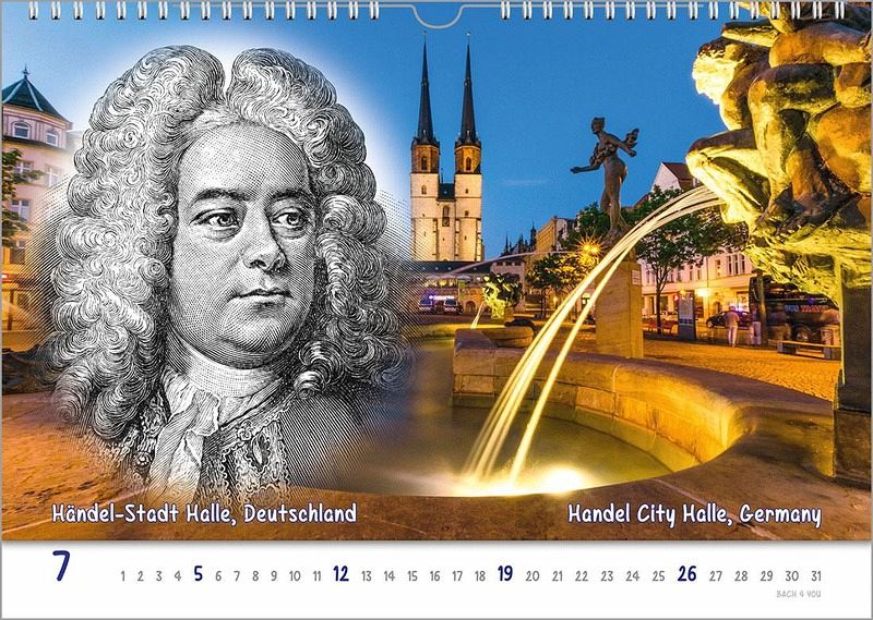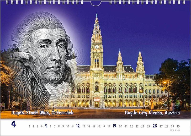 Ein edler Komponisten-Kalender, ein starker Musik-Kalender, ein cooles Musik-Geschenk 2026. Auf den Monatsblättern dieses kleinen Kalenderkunstwerkes finden Holzstiche und aktuelle Fotos zusammen. Es sind die ganz Großen der klassischen Musik, die vor begeisternden Fotos der sogenannten Musikerstädte eingebunden sind. Zwölf klassische Komponisten wie Mozart, Beethoven, Bach, Gounod, Haydn, Berlioz, Schubert, Händel, Brahms, Mendelssohn Bartholdy, Weber und Strauss ergeben mit ausgesucht edlen Städteaufnahmen ein harmonisches Miteinander. Man verbindet Mozart mit Salzburg, Strauss mit Wien und Leipzig mit Johann Sebastian Bach. Aber es gibt mehr solche Städte. Die zwölf spannendsten sind zu diesem besonderen Komponisten-Kalender - es ist auch ein Musik-Kalender - zusammen gefasst. Das Kalendarium dieses Musik-Kalenders, bzw. Komponisten-Kalenders ist so gehalten, dass es in allen Sprachen funktioniert.