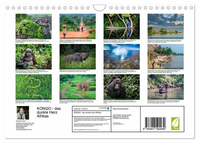 Der österreichische Fotograf Guenter Guni hat alle Regionen des Kongobeckens in den letzten zwanzig Jahren vielfacht bereist und zeigt in diesem Kalender beeindruckende Impressionen aus dem Innersten von Afrika.