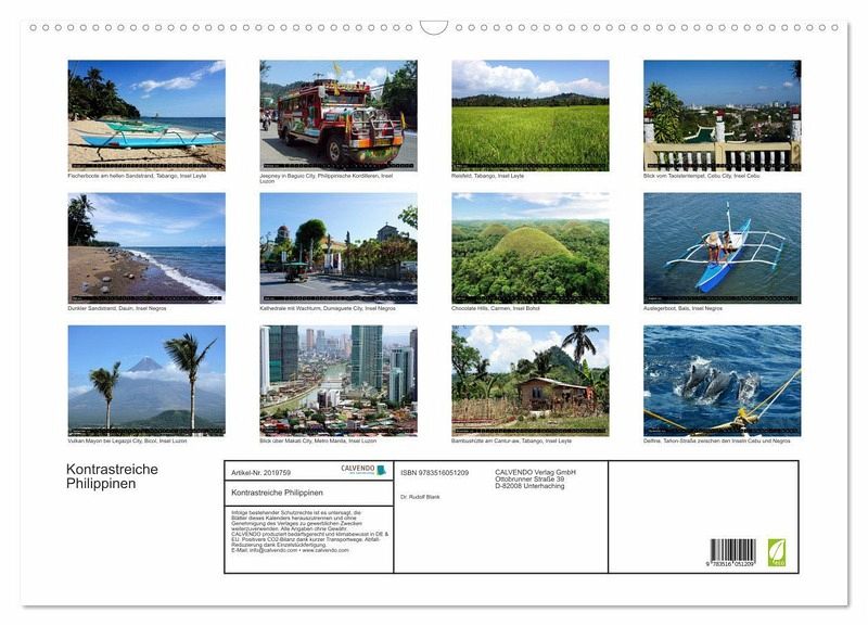 QUALITÄT - Hochwertiger Fotokalender mit 12 wunderschönen Motiven auf lichtbeständigem Bilderdruckpapier, robuste Spiralbindung mit Aufhängebügel.NACHHALTIG - deutliche Abfallreduzierung durch bedarfsgerechte Einzelstückfertigung, umweltfreundliches FSC-zertifiziertes Papier, Produktion in Deutschland, klimabewusste Logistik.PERFEKTES GESCHENK - Kalender für Freunde und Familie, für Kinder und Erwachsene, jung und alt, zu Weihnachten, Geburtstag oder zwischendurch.VIELFALT - Bildkalender in verschiedenen Formaten, z.B. DIN A5, DIN A4, DIN A3 sowie DIN A2. Ob Naturmotiv, Gemälde oder Fotos, ideal für ein persönliches Wohlfühlambiente.Fotografische Impressionen aus 5 von 7.107 Inseln der Philippinen von Autor(in): Rudolf Blank