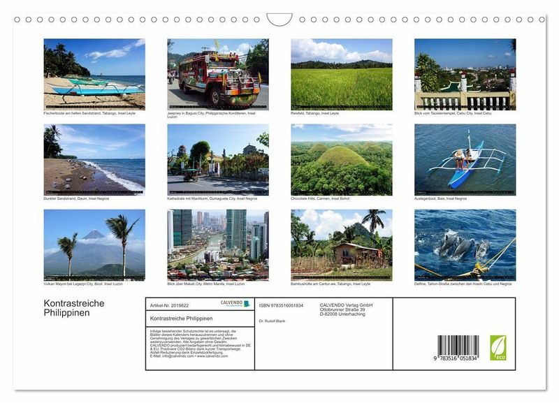 QUALITÄT - Hochwertiger Fotokalender mit 12 wunderschönen Motiven auf lichtbeständigem Bilderdruckpapier, robuste Spiralbindung mit Aufhängebügel.NACHHALTIG - deutliche Abfallreduzierung durch bedarfsgerechte Einzelstückfertigung, umweltfreundliches FSC-zertifiziertes Papier, Produktion in Deutschland, klimabewusste Logistik.PERFEKTES GESCHENK - Kalender für Freunde und Familie, für Kinder und Erwachsene, jung und alt, zu Weihnachten, Geburtstag oder zwischendurch.VIELFALT - Bildkalender in verschiedenen Formaten, z.B. DIN A5, DIN A4, DIN A3 sowie DIN A2. Ob Naturmotiv, Gemälde oder Fotos, ideal für ein persönliches Wohlfühlambiente.Fotografische Impressionen aus 5 von 7.107 Inseln der Philippinen von Autor(in): Rudolf Blank