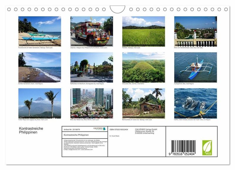 QUALITÄT - Hochwertiger Fotokalender mit 12 wunderschönen Motiven auf lichtbeständigem Bilderdruckpapier, robuste Spiralbindung mit Aufhängebügel.NACHHALTIG - deutliche Abfallreduzierung durch bedarfsgerechte Einzelstückfertigung, umweltfreundliches FSC-zertifiziertes Papier, Produktion in Deutschland, klimabewusste Logistik.PERFEKTES GESCHENK - Kalender für Freunde und Familie, für Kinder und Erwachsene, jung und alt, zu Weihnachten, Geburtstag oder zwischendurch.VIELFALT - Bildkalender in verschiedenen Formaten, z.B. DIN A5, DIN A4, DIN A3 sowie DIN A2. Ob Naturmotiv, Gemälde oder Fotos, ideal für ein persönliches Wohlfühlambiente.Fotografische Impressionen aus 5 von 7.107 Inseln der Philippinen von Autor(in): Rudolf Blank