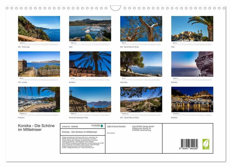 QUALITÄT - Hochwertiger Fotokalender mit 12 wunderschönen Motiven auf lichtbeständigem Bilderdruckpapier, robuste Spiralbindung mit Aufhängebügel.NACHHALTIG - deutliche Abfallreduzierung durch bedarfsgerechte Einzelstückfertigung, umweltfreundliches FSC-zertifiziertes Papier, Produktion in Deutschland, klimabewusste Logistik.PERFEKTES GESCHENK - Kalender für Freunde und Familie, für Kinder und Erwachsene, jung und alt, zu Weihnachten, Geburtstag oder zwischendurch.VIELFALT - Bildkalender in verschiedenen Formaten, z.B. DIN A5, DIN A4, DIN A3 sowie DIN A2. Ob Naturmotiv, Gemälde oder Fotos, ideal für ein persönliches Wohlfühlambiente.Wie beschreibt man Korsika? Eine beeindruckende Landschaft mit malerischen Buchten, atemberaubenden Küstenstraßen und französischem Flair, gepaart mit einer italienischen Note. von Autor(in): Dirk Sulima