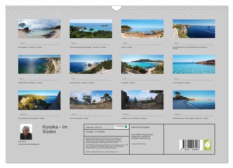 QUALITÄT - Hochwertiger Fotokalender mit 12 wunderschönen Motiven auf lichtbeständigem Bilderdruckpapier, robuste Spiralbindung mit Aufhängebügel.NACHHALTIG - deutliche Abfallreduzierung durch bedarfsgerechte Einzelstückfertigung, umweltfreundliches FSC-zertifiziertes Papier, Produktion in Deutschland, klimabewusste Logistik.PERFEKTES GESCHENK - Kalender für Freunde und Familie, für Kinder und Erwachsene, jung und alt, zu Weihnachten, Geburtstag oder zwischendurch.VIELFALT - Bildkalender in verschiedenen Formaten, z.B. DIN A5, DIN A4, DIN A3 sowie DIN A2. Ob Naturmotiv, Gemälde oder Fotos, ideal für ein persönliches Wohlfühlambiente.Der Süden Korsikas zeigt sich mit einer wunderbaren Vielfalt an herrlichen Landschaften von Autor(in): Adolf Zech