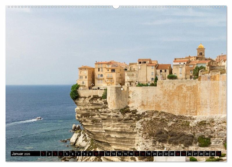 Januar: Bonifacio, die Festungsstadt im Süden, liegt auf einer unterspülten Landzunge in 900 m Höhe.