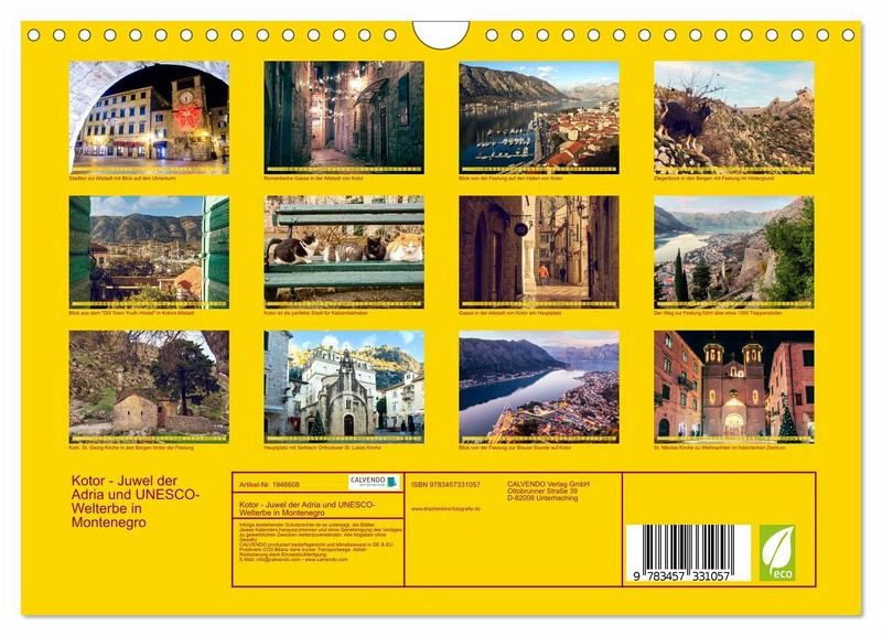 QUALITÄT - Hochwertiger Fotokalender mit 12 wunderschönen Motiven auf lichtbeständigem Bilderdruckpapier, robuste Spiralbindung mit Aufhängebügel.NACHHALTIG - deutliche Abfallreduzierung durch bedarfsgerechte Einzelstückfertigung, umweltfreundliches FSC-zertifiziertes Papier, Produktion in Deutschland, klimabewusste Logistik.PERFEKTES GESCHENK - Kalender für Freunde und Familie, für Kinder und Erwachsene, jung und alt, zu Weihnachten, Geburtstag oder zwischendurch.VIELFALT - Bildkalender in verschiedenen Formaten, z.B. DIN A5, DIN A4, DIN A3 sowie DIN A2. Ob Naturmotiv, Gemälde oder Fotos, ideal für ein persönliches Wohlfühlambiente.Kotor, eine malerische Stadt in Montenegro an der Adria von Autor(in): drachenkind-fotografie