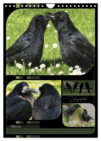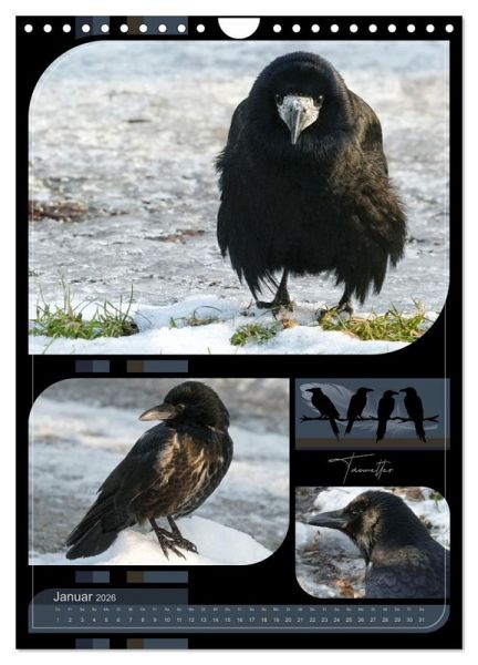 "Krähen - Im Wandel der Jahreszeiten" begleitet diese intelligenten und charismatischen Vögel durch das Jahr. Mit stimmungsvollen Aufnahmen von Rabenkrähen (Corvus corone), Saatkrähen (Corvus frugilegus) und Hybriden aus Raben- und Nebelkrähen (Corvus corone × Corvus cornix) zeigt der Kalender ihre neugierige und liebenswerte Natur. Farbenfrohe Umgebungen setzen die Rabenvögel eindrucksvoll in Szene und lassen ihre oft übersehene Schönheit erstrahlen. Ein Muss für alle Krähenfans!