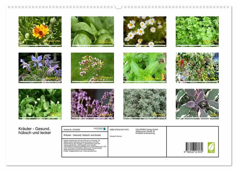 PREMIUM-LINIE - Brillanter Fotokalender mit 12 wunderschönen Motiven, Kunstdruck in Hochglanz in Museumsqualität.QUALITÄT - edle Materialien, stabile Rückwand mit 2 innovativen Einstecktaschen für eine optimale Präsentation an der Wand.NACHHALTIG - deutliche Abfallreduzierung durch bedarfsgerechte Einzelstückfertigung, umweltfreundliches FSC-zertifiziertes Papier, Produktion in Deutschland, klimabewusste Logistik.PERFEKTES GESCHENK - Kalender für Freunde und Familie, für Kinder und Erwachsene, jung und alt, zu Weihnachten, Geburtstag oder zwischendurch.Gesundheit aus dem Kräutergarten von Autor(in): Elisabeth Stanzer