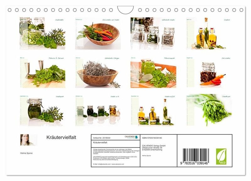 QUALITÄT - Hochwertiger Fotokalender mit 12 wunderschönen Motiven auf lichtbeständigem Bilderdruckpapier, robuste Spiralbindung mit Aufhängebügel.NACHHALTIG - deutliche Abfallreduzierung durch bedarfsgerechte Einzelstückfertigung, umweltfreundliches FSC-zertifiziertes Papier, Produktion in Deutschland, klimabewusste Logistik.PERFEKTES GESCHENK - Kalender für Freunde und Familie, für Kinder und Erwachsene, jung und alt, zu Weihnachten, Geburtstag oder zwischendurch.VIELFALT - Bildkalender in verschiedenen Formaten, z.B. DIN A5, DIN A4, DIN A3 sowie DIN A2. Ob Naturmotiv, Gemälde oder Fotos, ideal für ein persönliches Wohlfühlambiente.Die Vielfalt der Kräuterküche von Autor(in): Helma Spona