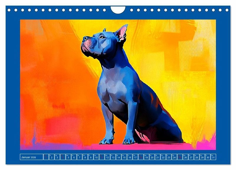 Molosser und Gebrauchshunde sind treue Gefährten, die uns Menschen mit ihrer Intelligenz, Kraft und Eleganz beeindrucken. In diesem Kalender werden 12 edle und auch seltene Rassen in kunstvollen Illustrationen präsentiert. Jede Szene wurde mit Hilfe von KI erstellt und fängt das Wesen und den Charakter dieser außergewöhnlichen Tiere ein.