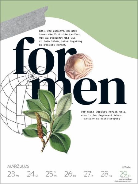 - Format: 24 x 32 cm; Wochenkalender mit 53 einzigartigen Bildern