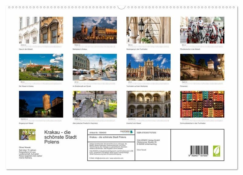 PREMIUM-LINIE - Brillanter Fotokalender mit 12 wunderschönen Motiven, Kunstdruck in Hochglanz in Museumsqualität.QUALITÄT - edle Materialien, stabile Rückwand mit 2 innovativen Einstecktaschen für eine optimale Präsentation an der Wand.NACHHALTIG - deutliche Abfallreduzierung durch bedarfsgerechte Einzelstückfertigung, umweltfreundliches FSC-zertifiziertes Papier, Produktion in Deutschland, klimabewusste Logistik.PERFEKTES GESCHENK - Kalender für Freunde und Familie, für Kinder und Erwachsene, jung und alt, zu Weihnachten, Geburtstag oder zwischendurch.Krakau - die schönste Stadt Polens von Autor(in): Oliver Nowak