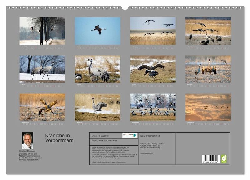 QUALITÄT - Hochwertiger Fotokalender mit 12 wunderschönen Motiven auf lichtbeständigem Bilderdruckpapier, robuste Spiralbindung mit Aufhängebügel.NACHHALTIG - deutliche Abfallreduzierung durch bedarfsgerechte Einzelstückfertigung, umweltfreundliches FSC-zertifiziertes Papier, Produktion in Deutschland, klimabewusste Logistik.PERFEKTES GESCHENK - Kalender für Freunde und Familie, für Kinder und Erwachsene, jung und alt, zu Weihnachten, Geburtstag oder zwischendurch.VIELFALT - Bildkalender in verschiedenen Formaten, z.B. DIN A5, DIN A4, DIN A3 sowie DIN A2. Ob Naturmotiv, Gemälde oder Fotos, ideal für ein persönliches Wohlfühlambiente.Fotoaufnahmen von Kranichen aus der Region Vorpommern. von Autor(in): Siegfried Reinhold