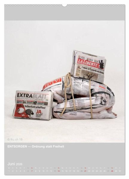 12 Begriffe werden noch etwas mehrdeutiger und schillernder illustriert, als sie ohnehin schon sind. Der Kalender philosophiert kritisch und humorvoll über das Leben in Freiheit mit zunehmend verschwommenen Grenzen einerseits, und dem Wunsch nach Einschränkung, klaren Tatsachen und "fesselnden" Aktivitäten andererseits.