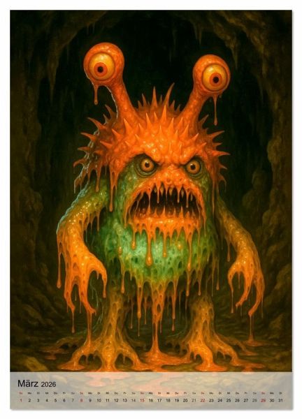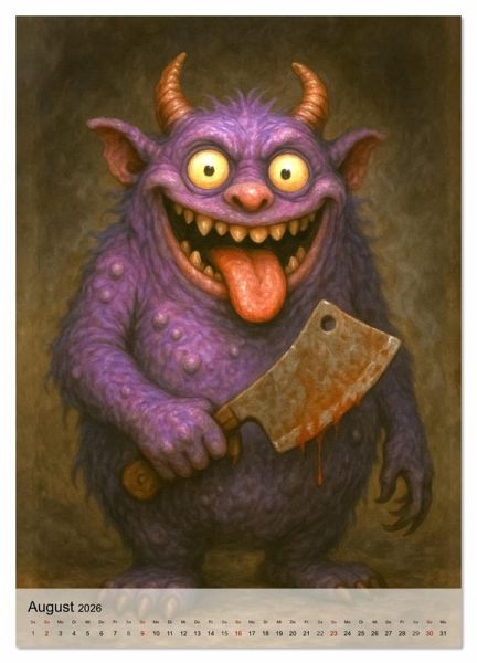 Ein düster-verspielter KI-Kalender, der jeden Monat ein anderes grotesk-süßes Monster in skurrilen Alltagssituationen zeigt - von sabbernden Fensterleckern bis zu pelzigen Kreaturen mit Rattenfrisur. Sind Sie bereit für die kleinen Biester unter Ihrem Bett?