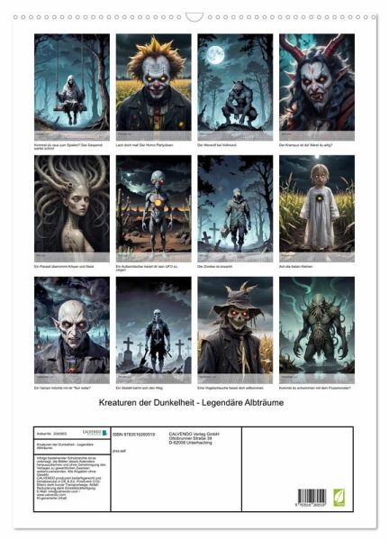QUALITÄT - Hochwertiger Fotokalender mit 12 wunderschönen Motiven auf lichtbeständigem Bilderdruckpapier, robuste Spiralbindung mit Aufhängebügel.NACHHALTIG - deutliche Abfallreduzierung durch bedarfsgerechte Einzelstückfertigung, umweltfreundliches FSC-zertifiziertes Papier, Produktion in Deutschland, klimabewusste Logistik.PERFEKTES GESCHENK - Kalender für Freunde und Familie, für Kinder und Erwachsene, jung und alt, zu Weihnachten, Geburtstag oder zwischendurch.VIELFALT - Bildkalender in verschiedenen Formaten, z.B. DIN A5, DIN A4, DIN A3 sowie DIN A2. Ob Naturmotiv, Gemälde oder Fotos, ideal für ein persönliches Wohlfühlambiente.Ein düsterer Kalender, der legendäre Albträume entfesselt, indem er Kreaturen der Dunkelheit in ihrer schaurigsten Gestalt präsentiert. von Autor(in): Fabian Junge