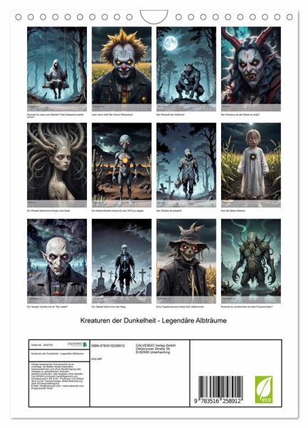 QUALITÄT - Hochwertiger Fotokalender mit 12 wunderschönen Motiven auf lichtbeständigem Bilderdruckpapier, robuste Spiralbindung mit Aufhängebügel.NACHHALTIG - deutliche Abfallreduzierung durch bedarfsgerechte Einzelstückfertigung, umweltfreundliches FSC-zertifiziertes Papier, Produktion in Deutschland, klimabewusste Logistik.PERFEKTES GESCHENK - Kalender für Freunde und Familie, für Kinder und Erwachsene, jung und alt, zu Weihnachten, Geburtstag oder zwischendurch.VIELFALT - Bildkalender in verschiedenen Formaten, z.B. DIN A5, DIN A4, DIN A3 sowie DIN A2. Ob Naturmotiv, Gemälde oder Fotos, ideal für ein persönliches Wohlfühlambiente.Ein düsterer Kalender, der legendäre Albträume entfesselt, indem er Kreaturen der Dunkelheit in ihrer schaurigsten Gestalt präsentiert. von Autor(in): Fabian Junge