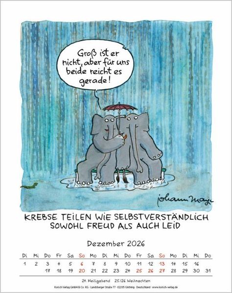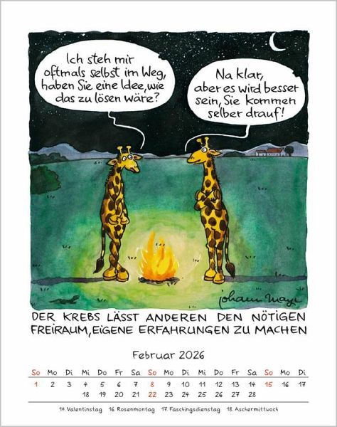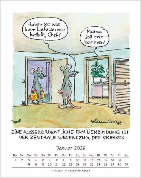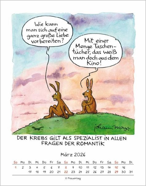 Der erfolgreiche Sternzeichenkalender mit charmanten und witzigen Cartoons für jeden Monat von Johann Mayr.
