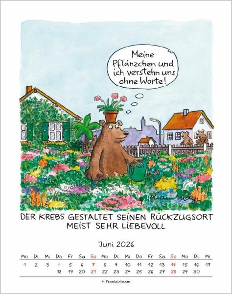 Sternzeichenkalender mit lustigen Cartoons auf 12 Seiten, Format: 19 x 24 cm Hervorragende Druckqualität bis ins Detail FSC zertifiziertes Papier aus verantwortungsvollen Quellen