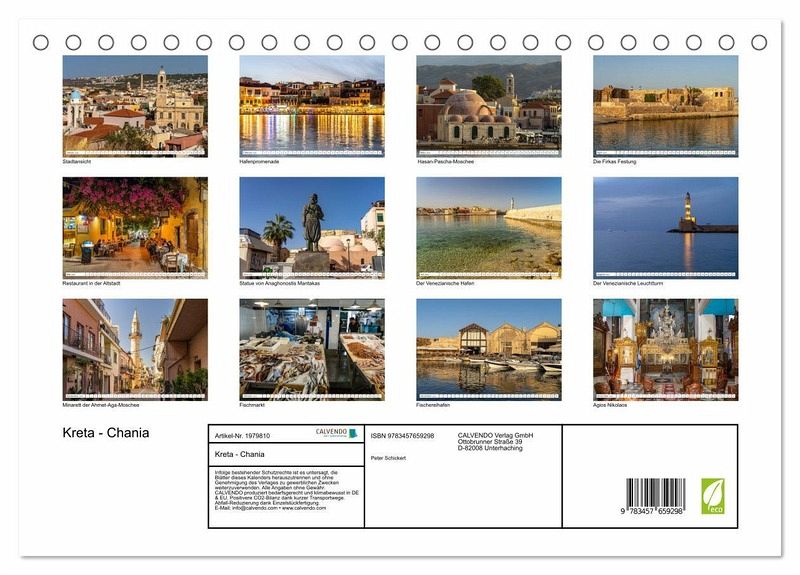 QUALITÄT - Hochwertiger Fotokalender mit 12 wunderschönen Motiven auf lichtbeständigem Bilderdruckpapier, robuste Spiralbindung.NACHHALTIG - deutliche Abfallreduzierung durch bedarfsgerechte Einzelstückfertigung, umweltfreundliches FSC-zertifiziertes Papier, Produktion in Deutschland, klimabewusste Logistik.PERFEKTES GESCHENK - Kalender für Freunde und Familie, für Kinder und Erwachsene, jung und alt, zu Weihnachten, Geburtstag oder zwischendurch.VIELFALT - Bildkalender in verschiedenen Formaten, z.B. DIN A5, DIN A4, DIN A3 sowie DIN A2. Ob Naturmotiv, Gemälde oder Fotos, ideal für ein persönliches Wohlfühlambiente.Die wunderbare Altstadt von Chania auf der Insel Kreta, Griechenland. von Autor(in): Peter Schickert