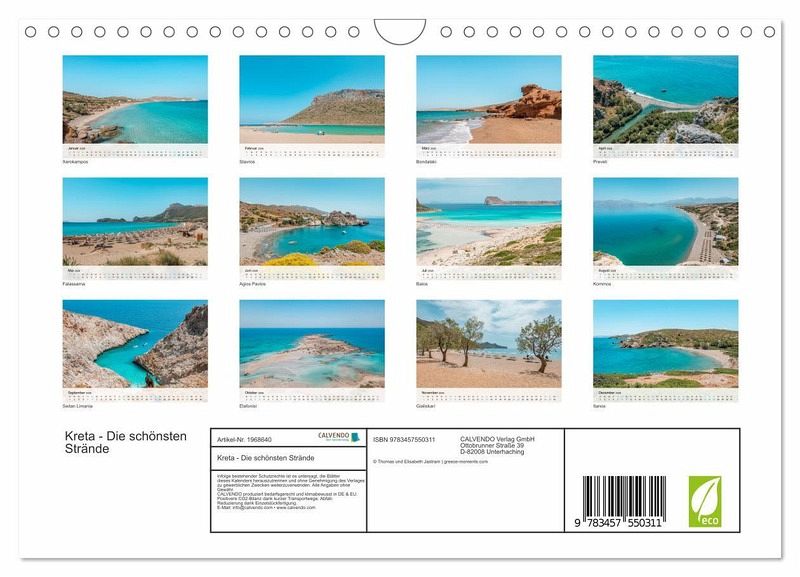QUALITÄT - Hochwertiger Fotokalender mit 12 wunderschönen Motiven auf lichtbeständigem Bilderdruckpapier, robuste Spiralbindung mit Aufhängebügel.NACHHALTIG - deutliche Abfallreduzierung durch bedarfsgerechte Einzelstückfertigung, umweltfreundliches FSC-zertifiziertes Papier, Produktion in Deutschland, klimabewusste Logistik.PERFEKTES GESCHENK - Kalender für Freunde und Familie, für Kinder und Erwachsene, jung und alt, zu Weihnachten, Geburtstag oder zwischendurch.VIELFALT - Bildkalender in verschiedenen Formaten, z.B. DIN A5, DIN A4, DIN A3 sowie DIN A2. Ob Naturmotiv, Gemälde oder Fotos, ideal für ein persönliches Wohlfühlambiente.Die schönsten Strände der griechischen Insel Kreta von Autor(in): Thomas Jastram